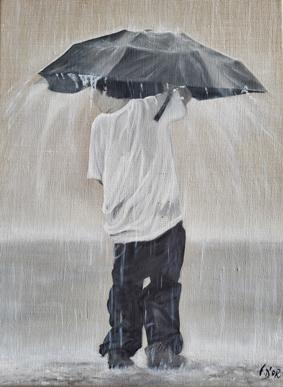 Huile sur toile en lin 40x30 cm: Vive la pluie.