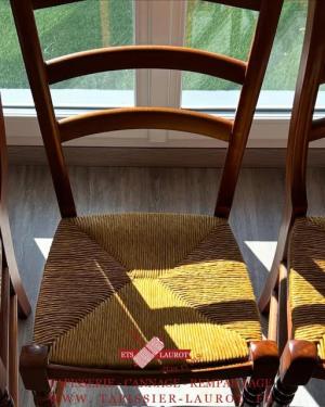 Réalisations de cannage et de rempaillage sur chaises, effectuées pour des particuliers et des professionnels, dans le cadre de projets artisanaux réalisés en atelier ou à domicile.