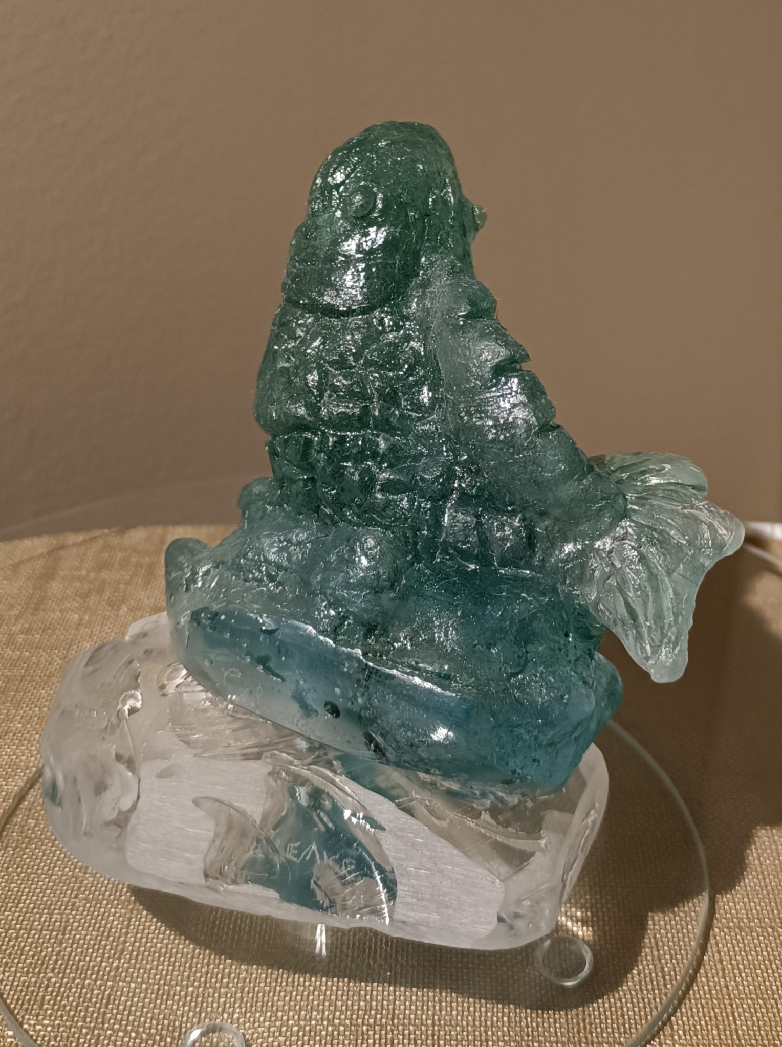 Pâte de verre à la cire perdue sur socle en cristal