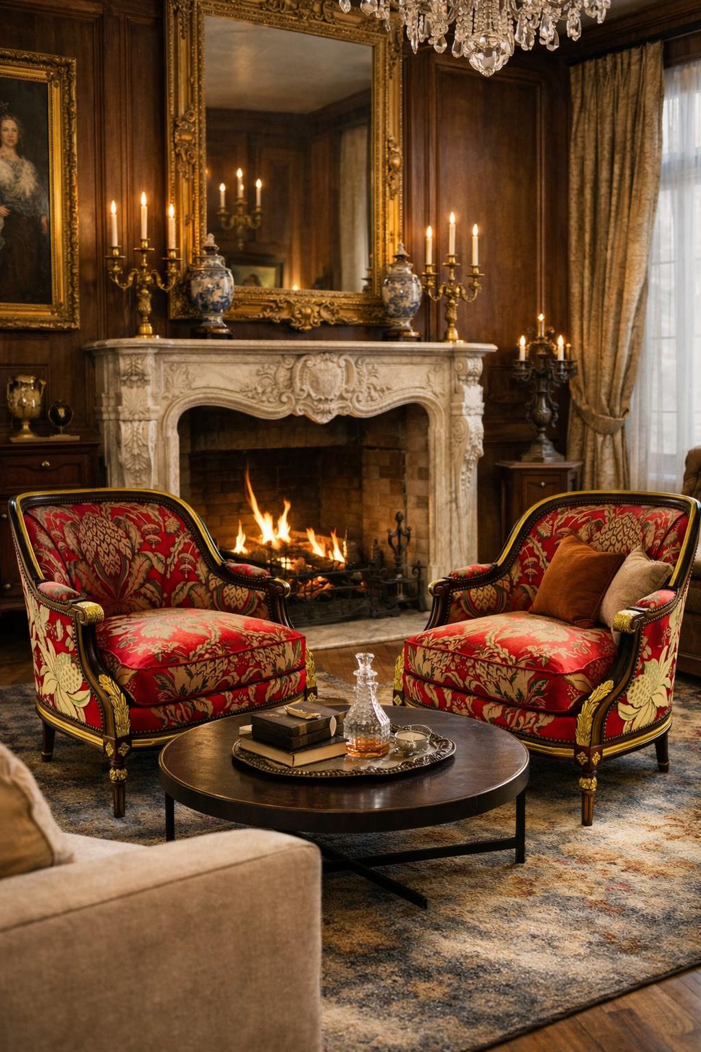 Bergères anciennes. Bois doré à la feuille, garniture traditionnelle . Etoffe Tassinari & Chatel