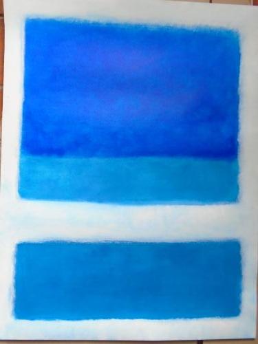 A VENDRE: 150€. Abstraction ,bleu manganèse ,blanc de titane ,format raisin