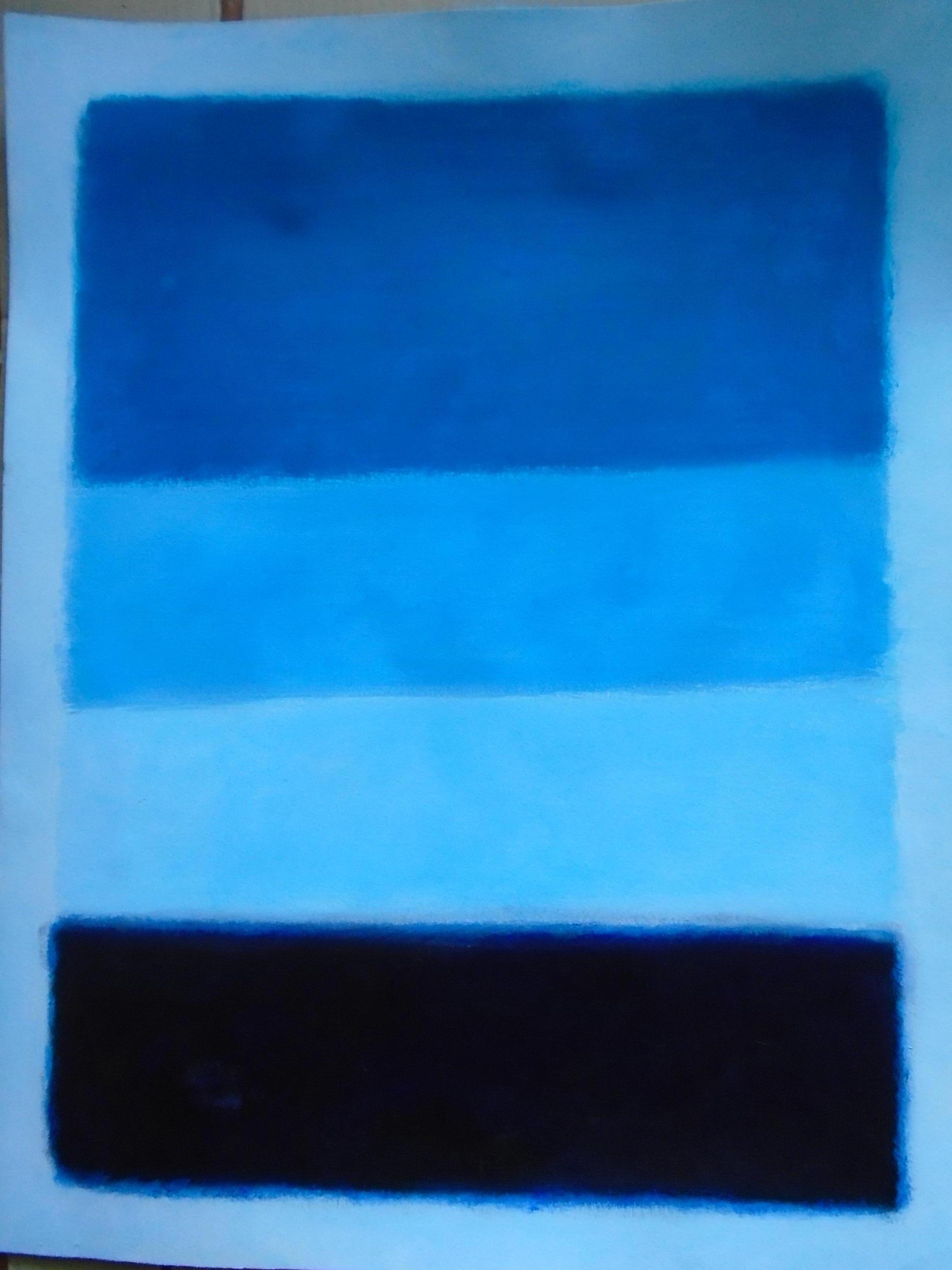 A VENDRE: 150€. Abstrait acrylique bleu cobalt et manganèse ,noir d'ivoire et blanc de titane.