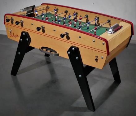 Le babyfoot S230 Sulpie en hêtre naturel,ruby. liseré ,mc rouge tapis vert. Un classique de la fabrication charentaise, disponible en plusieurs combinaisons de couleurs.