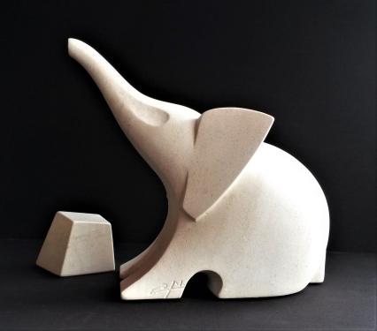 Elephant blanc : pierre de Lens. H : 30 cm