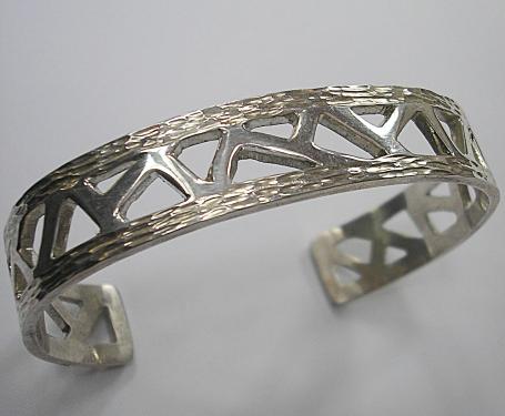 Superbe bracelet ajouré et martelé en argent massif 95% minimum garanti,modèle mixte réalisé à la main par Eric Klein de l'Atelier d'Art EK-KG