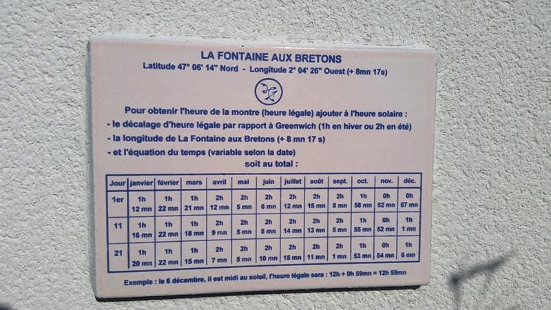Plaque explicative permettant de mettre sa montre à l'heure avec le cadran solaire...
