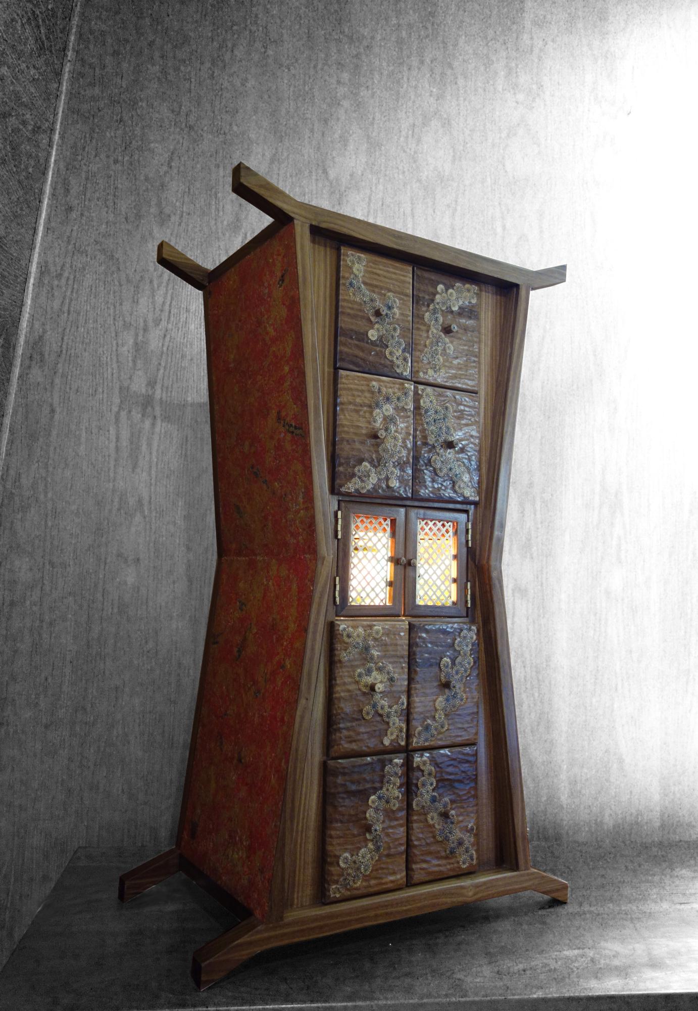 Depuis 2019, je m'oriente vers une miniaturisation de mes réalisations; ce choix est délibéré, il me soustrait de la notion d'utilité. L'esthétisme et la matière deviennent mes principales préoccupations. Je récupère, je prélève au gré de mes promenades: matières végétales, bois, nacres, filets d'emballages alimentaires, tissus, plastiques, métaux,etc..... Toutes ces matières sont retravaillées et transformées à l'atelier et constituent les futurs matériaux utilisés dans la fabrication de mes meubles.