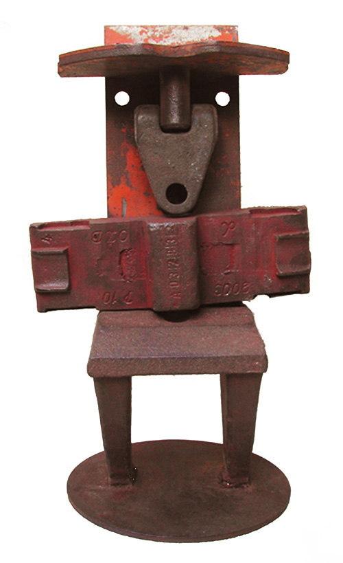 L'acier, comme matériau à modeler, impose des difficultés dû à sa dureté et sa texture. Malgré ces inconvénients et d'autres, comme son poids, je crée des personnages dont les caractéristiques principales sont : l'expressivité, la légèreté, l'humour, l'ironie.