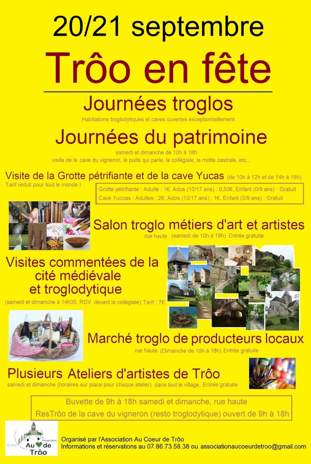 caves et grottes ouvertes exptionnellement , marché gourmand le dimanche , vide-maison des troiens tout le week-end , visites commentées sur l'histoire du village le samedi et dimanche, départ à 14h30 devant la collégiale.