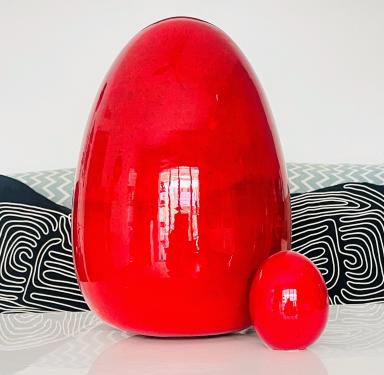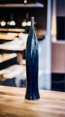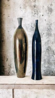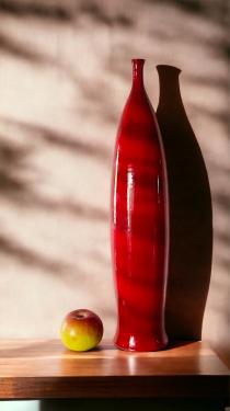 Bouteille émail rouge oxyde noir cuisson, 1050°