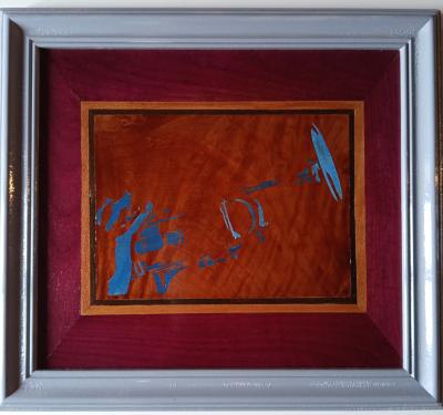 Tableau en marqueterie , format 36x27 , essences naturelles et colorées