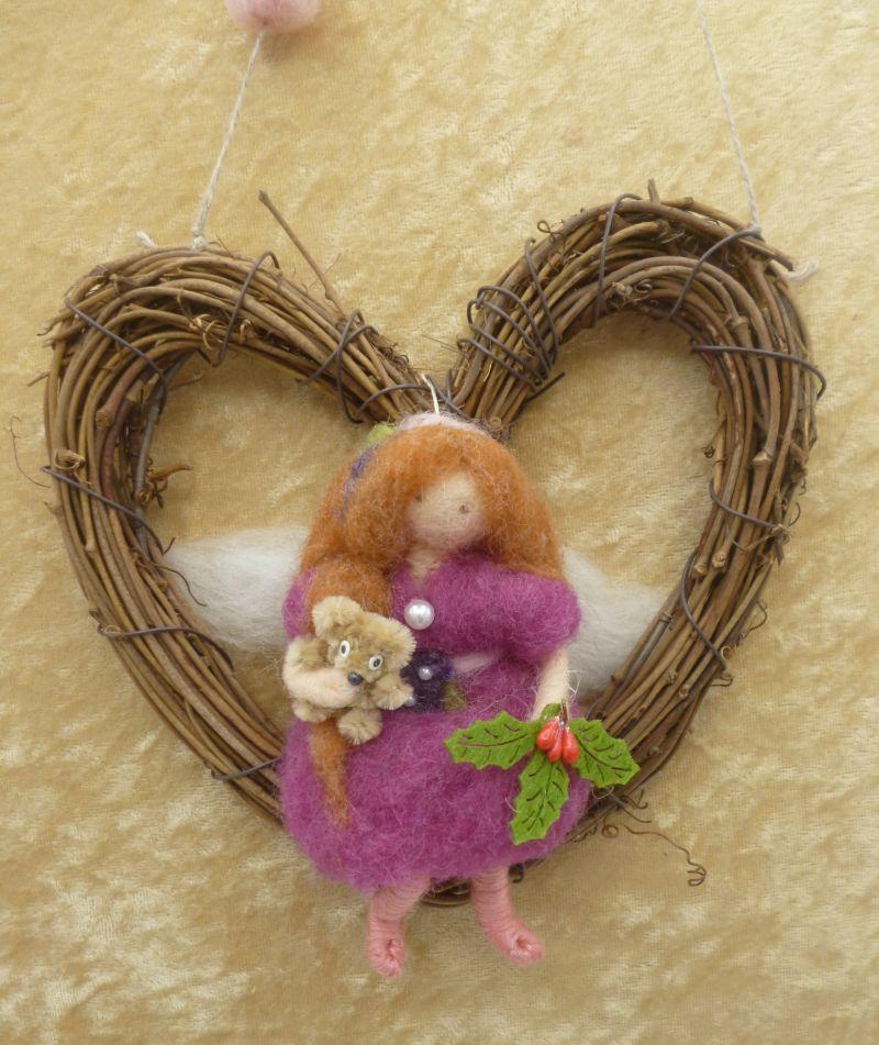 Fée esprit Art Nouveau, tons de roses, base laiton sans nickel. Fée, chaîne, mousqueton, ont étés passés dans des bains d'argenture, puis vernis. Perle de verre.